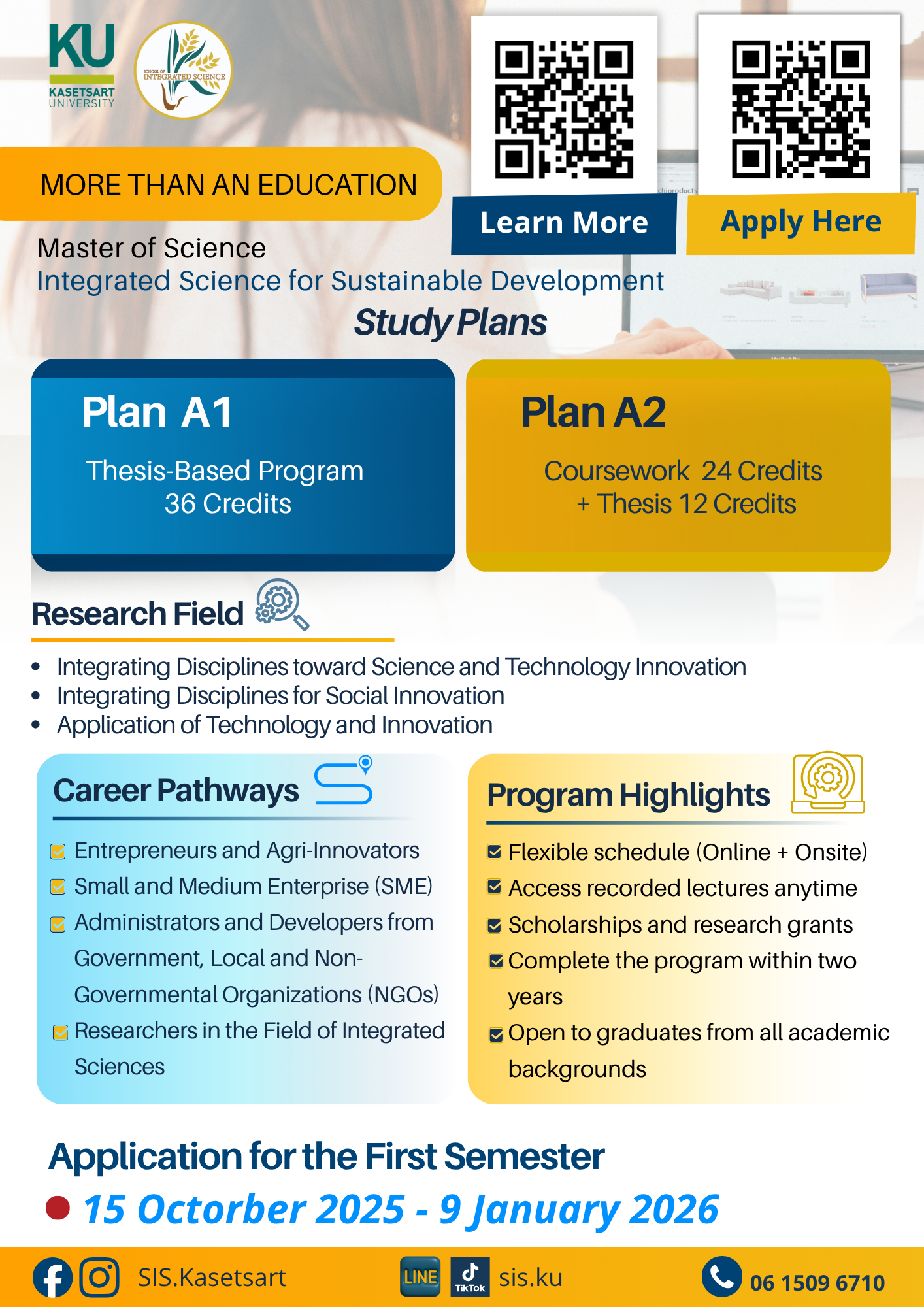 📑 รายละเอียดหลักสูตร: https://sis.ku.ac.th/master-degree/